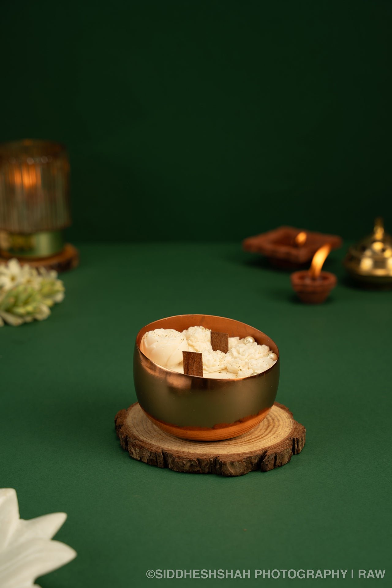 Our Golden Hour Candle captures the hush before dusk in a mirror-bright Thai brass bowl. Two crackling wooden wicks dance across hand-poured soy wax, casting warm, flickering halos like the last rays of sunlight. Select your sunset—Citrus Meadow, Mystic Oudh, Velvet Berries, or Royal Rose—and let the aroma linger long after evening slips away. Presented in Touchwood’s evergreen gift box, the bowl wipes clean for effortless refills, so every twilight can glow on command.